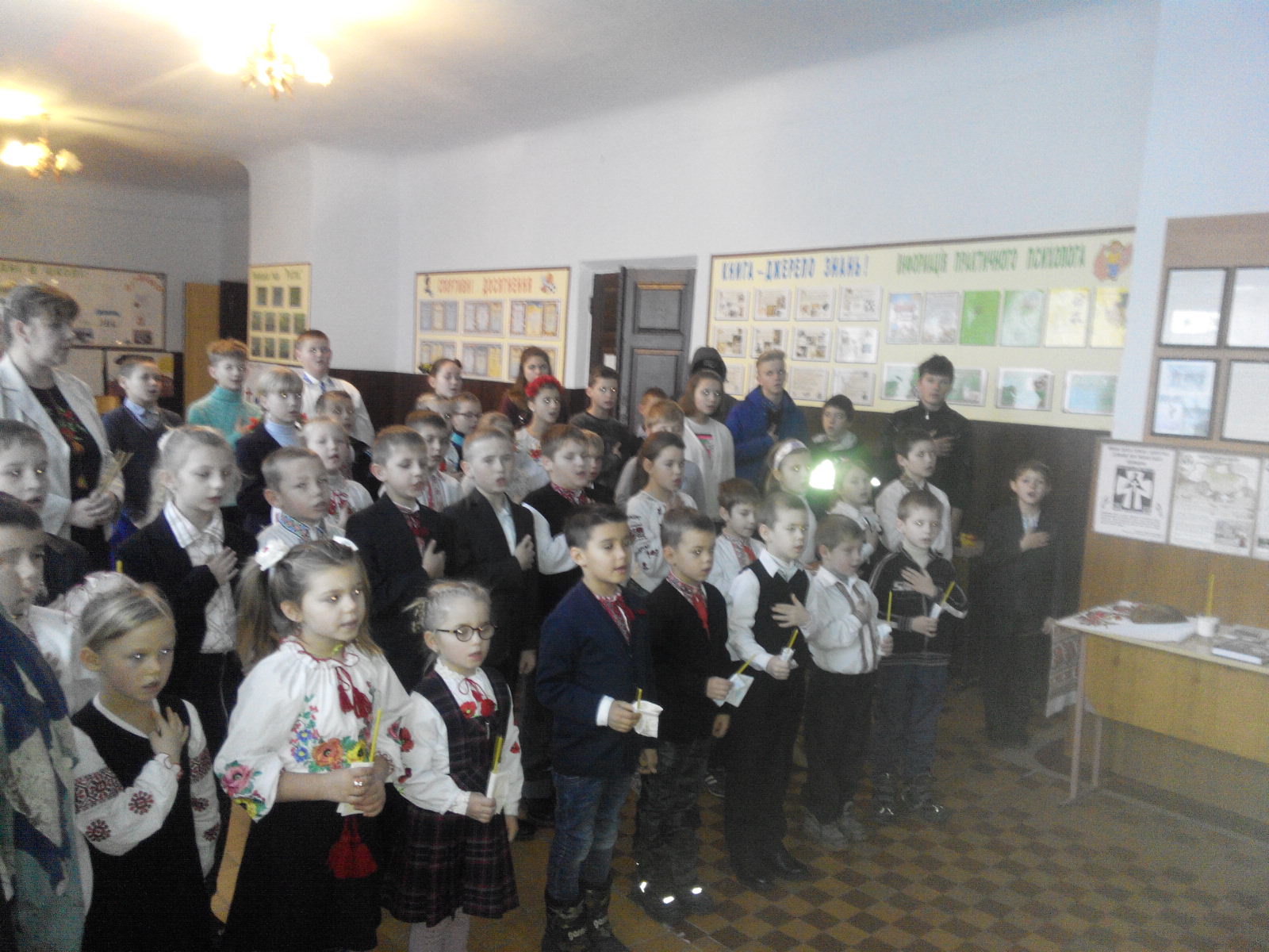 На шкільній лінійці діти декламували вірші про голодомор, а в кінці, вже традиційно, між учнями школи було розділено хліб, як символ того, що Україна більше ніколи не голодуватиме.