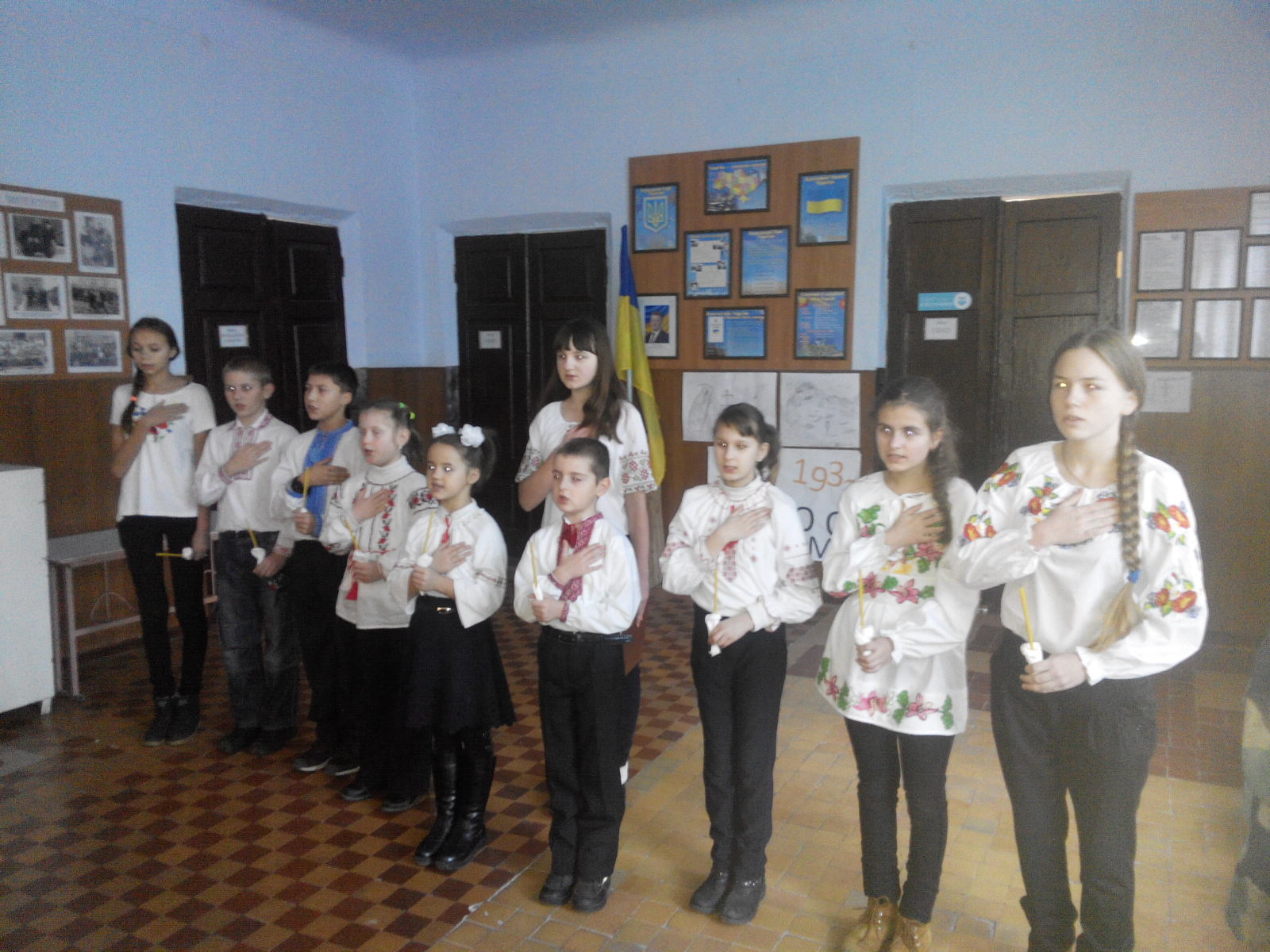 Учні згадали страшні сторінки історії нашого народу - Голодомор 1932 - 1933 років. Ця трагедія забрала життя мільйонів наших земляків. В українських селах від голоду помирали і дорослі, і діти. Як підрахували історики, у той час в Україні помирало 17 осіб на хвилину, понад 25 тисяч людей щодня. Масове голодування почалося ще у грудні 1931 року, тривало до вересня 1933 року. 22 місяці народ страждав, мучився, вмирав.